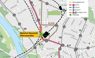 - Haltestellen: Bahnhof Neustadt (Hansastraße)