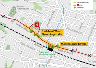 - Haltestellen: Moritzburger Straße, Flemmingstraße
