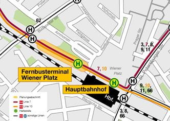 - Haltestelle (neu): Fernbusterminal Wiener Platz