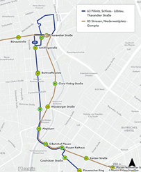 Fazit: Eine Verlängerung der Linien 70/80 Richtung Plauen parallel zu den Linien 63 und 85 ist mit hohem Zusatzaufwand verbunden und wird daher nicht umgesetzt.