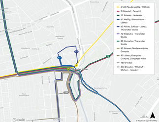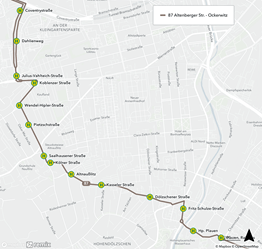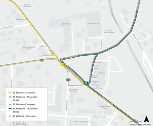 - Voraussetzung hierfür ist die Sanierung der Döbelner Straße, um deren Befahrbarkeit mit Standardbussen zu gewährleisten.