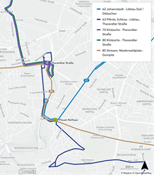 Fazit: Nach Ausbau der Döbelner Straße werden Linien 73 und 79 zu einer Linie zusammengeführt. Die Linie dient weiterhin der Anbindung von Übigau.