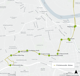 Kann die Linie 79 bis zur Schlehenstraße verlängert werden, um einen Übergang zur Linie 2 zu erleichtern?