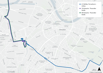 - Eine Verknüpfung mit dem kürzeren „Studentenshuttle“ ist u.a. wegen fehlender Endpunkte im Bereich Strehlen aktuell ebenfalls nicht umsetzbar.