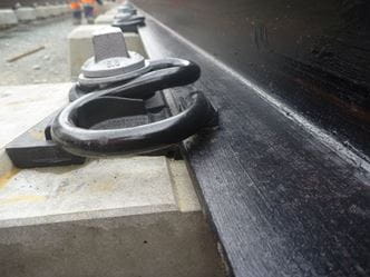 Vor dem Einbau der Kammerelemente sind die Montagelippen der Schienenfußunterlagen abzutrennen (abzureißen).