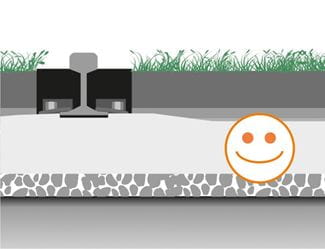 Die direkte Abführung des Oberflächenwassers in den Untergrund ist gewährleistet. Gleichzeitig ist die lärmmindernde Wirkung der Raseneindeckung nachgewiesen und stellt damit eine wichtige aktive Schallschutzmaßnahme dar.
