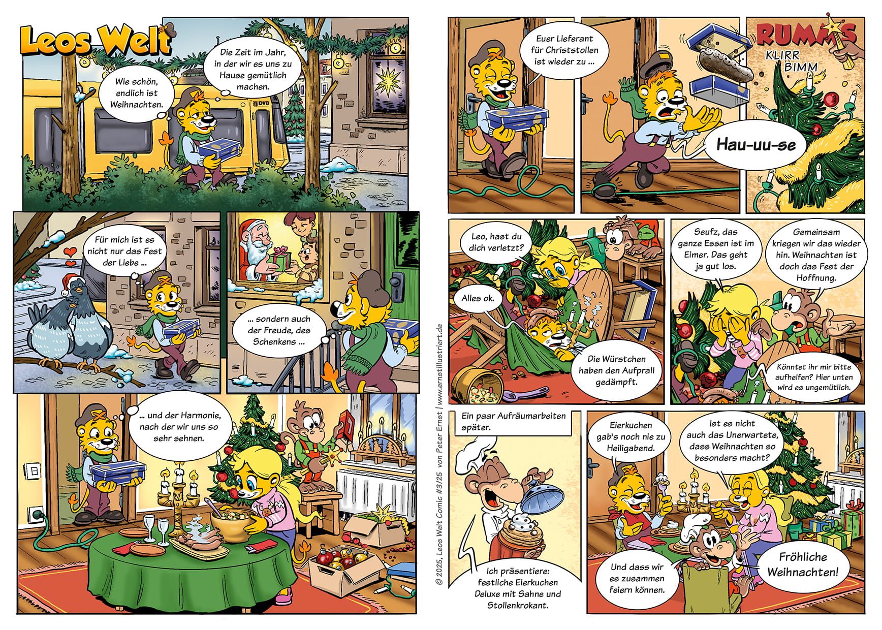 Die schönste Zeit des Jahres ist endlich da: Weihnachten! Leo, Theo und Layla feiern zusammen Heiligabend, doch plötzlich bricht Chaos aus. Warum? Das lest ihr im Comic.
