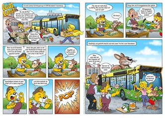 Leo, Theo und Layla fahren mit dem Deutschlandticket nach Berlin. Was sie alles erleben, erfahrt ihr im Comic!