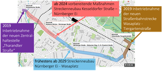Der Bau der neuen Straßenbahnstrecke zwischen Wasaplatz und Nürnberger Platz kann frühestens im Jahr 2029 beginnen. Für ein Bauvorhaben dieser Größe sind zwei bis drei Jahre Bauzeit realistisch.