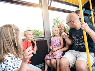 Sie zeigen, was in unseren Fahrzeugen erlaubt ist und was nicht. Setzten Sie z. B. Ihren Rucksack ab, damit Durchgänge nicht blockiert werden, drücken Sie rechtzeit den Haltewunschtaster, damit der Fahrer keine Notbremsung machen muss und halten Sie sich während der Fahrt gut fest, um sich und andere nicht zu verletzen.